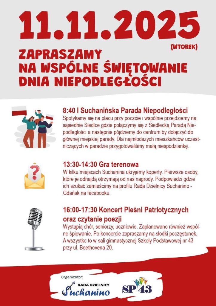 W dniu 11 listopada wychowankowie oraz absolwenci naszego przedszkola wzięli udział w Marszu Niepodległości. Wydarzenie zostało zorganizowane we współpracy z Radą Dzielnicy Suchanino. Podczas marszu połączyliśmy się również z uczestnikami Marszu Niepodległości z dzielnicy Siedlce, wspólnie celebrując Narodowe Święto Niepodległości.